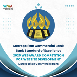 Metropolitan Commercial Bank (the “Bank,” “MCB”), a full-service commercial bank headquartered in New York City, is proud to announce it has been recognized with the 2025 WebAward for Bank Standard of Excellence by the Web Marketing Association (WMA). This prestigious award highlights the Bank’s commitment to deliver an exceptional digital experience that reflects both innovation and a client-first approach.
